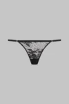 The floral lace mini thong plays with transparency in the most subtle way and opens at the crotch with bold allure. Elastic straps, enhanced with gold-tone finishes, contour the curves with precision.