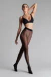 The illusion of a photogenic fishnet. These tights flatter the figure with their sculpting weave and high waist. The delicate seams elegantly highlight the back of the legs. A flat waistband by Maison Close emphasises the waist. Without reinforcement on the feet, heeled sandals are an obvious choice.