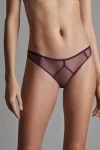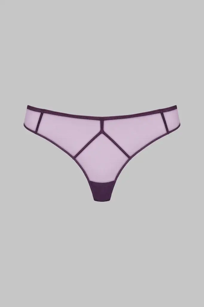 Heart-shaped panties in 100% sheer mesh. Cross-stitching.
