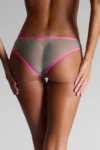Briefs in transparent pastel tulle, highlighted with ultra-flat fluorescent elastic at the waist. Light and comfortable cut. Contrasting Maison Close logo at the back. No cotton lining for complete transparency.
