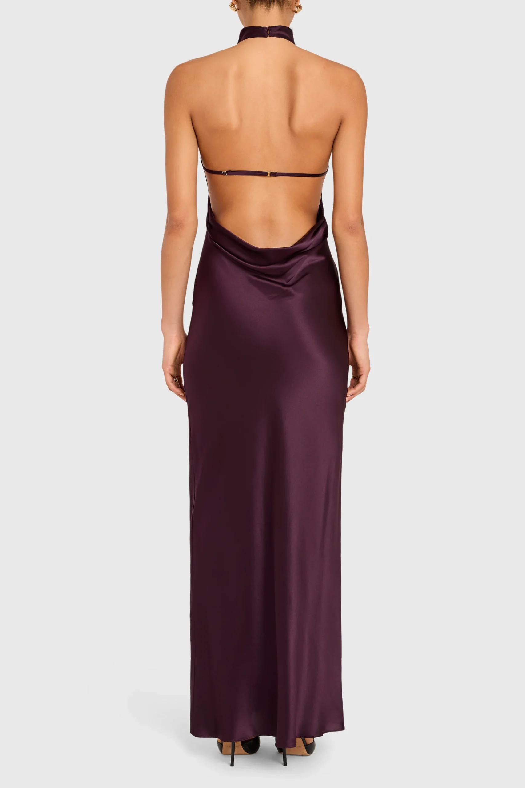 Raise the stakes in the Santana Gown. With a halter mock-neck and a floor-length silhouette, this gown delivers the perfect mix of drama and elegance. Pair with silver heels and a clean updo for your next unforgettable evening.