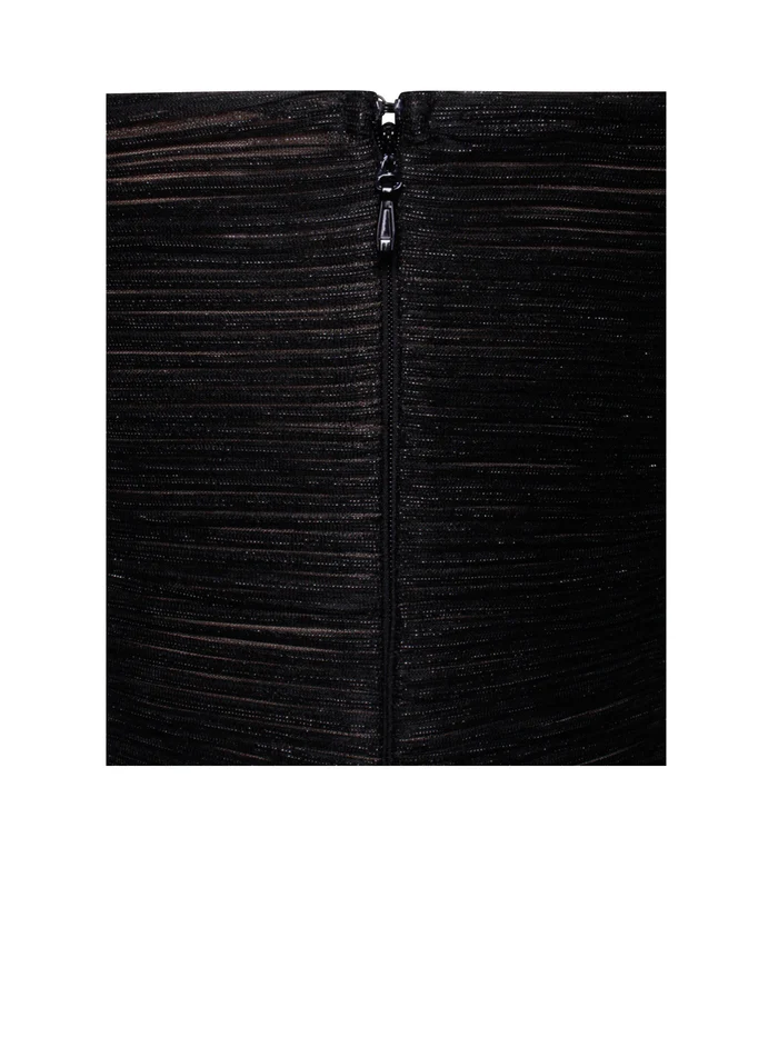 Step out in style! This stunning silhouette is crafted to hug and enhance your natural curves with fully ruched details throughout. The adjustable thin elastic straps and lightly padded chest lend extra lift and support. The metallic pleated chiffon fabric adds a touch of glamour and will make you shine. Dress it up with a mini bag and clear heels for a luxurious black-tie party look!
