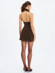 Flirty with a touch of edge, the Yael Dress is crafted in rich espresso vegan suede for a look that’s as cozy as it is captivating. The halter neckline, trimmed in plush faux fur, adds a dash of drama, while gold shank buttons at the back neck closure lend a refined finish. Subtle ruching across the bodice enhances the shape, creating a sculpted silhouette that flatters from every angle. The backless cut and A-line mini skirt bring the flirt, while a smooth satin lining and invisible zipper keep it polished. Perfect for crisp evening strolls, rooftop wine tastings, or any fall outing where style takes center stage.